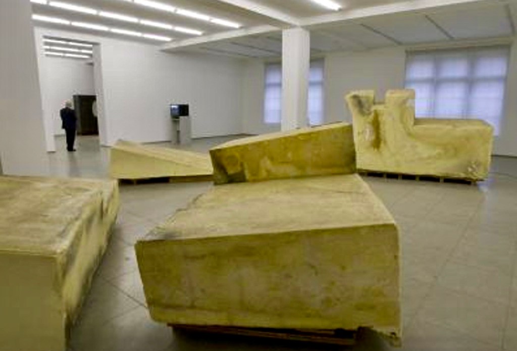 (7) Fonds sind große Filzstapel, die von schweren Kupferplatten beschwert sind. Der eine oder andere Fonds hat auch Kupferableiter oder Antennen, die die Energie dieser Batterien ableiten. Filz ist, wie bekannt, gepresstes Tierhaar. Der Filz, den Beuys verwendet, ist hochwertiger Filz. Die Fonds könnten als ein Gegenüber zur Idee der „sozialen Plastik“ angesehen werden, die uns sagen können, was mit ihr gemeint sei