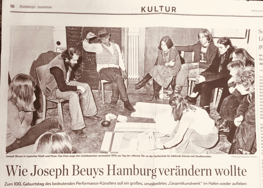 Beuys sah das genau so, merkte aber an, dass innerhalb der Gesellschaft eine Notwendigkeit bestehe, den Schritt aus der Kunst in die Gesellschaft zu wagen.
